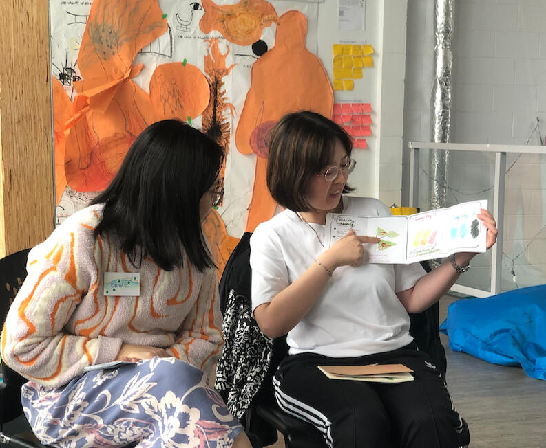 An important part of this work was capturing the passions and hopes of community champions—some who had been involved since day one, others just beginning to find their voice. I avoided relying on formal interviews or English as the default, instead leaning into the vibrant, multilingual patchwork that defines Edmonds. This meant showing up in all kinds of places: community school rooms with women-only English learner groups, library art events, a bustling business expo, and even cozy kitchen tables in people’s homes. To meet people where they were—literally and figuratively—I designed tools that could flex: activities that worked across languages, group sizes, comfort levels, and communication styles. Whether someone shared through stories, gestures, drawings, or just a quiet presence, there was space for them in the narrative we were building together.